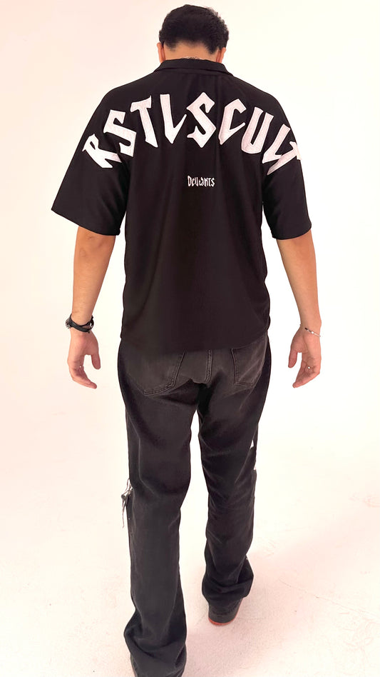 RSTLS CULT Deviants Quarter zip boxy Tee